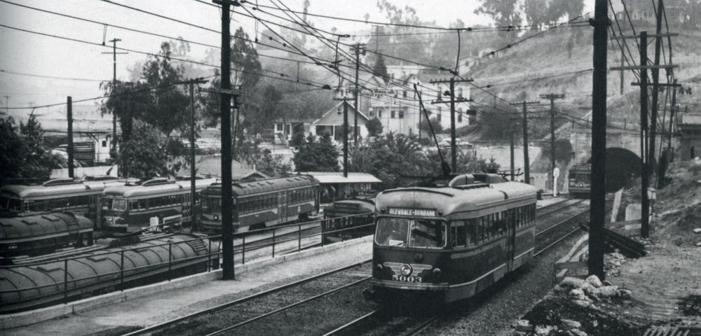 He was a youth when his family moved to Alhambra, while awaiting construction of their new home in San Marino. The Alhambra home was next to the tracks of Pacific Electric’s San Bernardino Line, and there his interest in interurbans was born. The new San Marino home was located two blocks from PE’s Monrovia-Glendora Line.